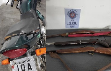 A Polícia Militar de Conceição do Coite, na Região do Sisal, apreendeu três espingardas e uma motocicleta neste domingo (21). De acordo com a PM, suspeito...