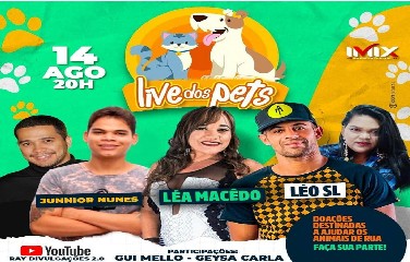 A ONG Defesa Animal Santaluz realiza, neste sexta (14), uma live beneficente com shows de vários artistas locais. A apresentação ocorre a partir das 2...