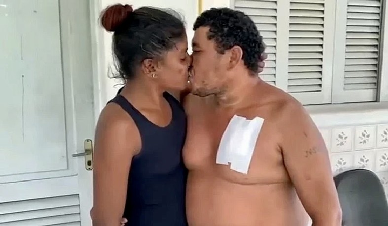 Mulher dá facada no peito do marido, mas é perdoada com beijo na delegacia; assista