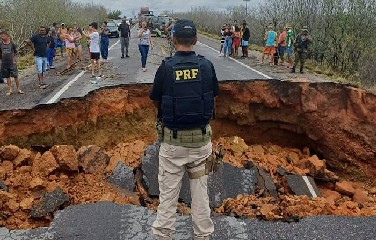 Cratera interdita BR-116 em Tucano após fortes chuvas; motoristas devem busc...