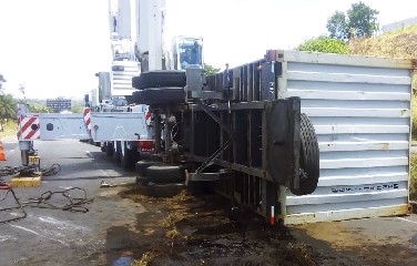 Carreta tomba na BR-324 e causa congestionamento sentido Salvador
